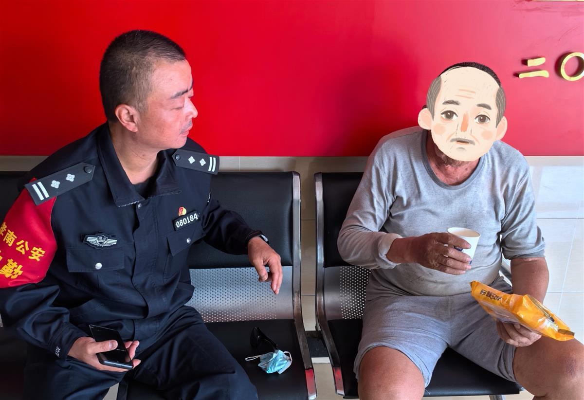 接警后,民警迅速前往现场找到这名爹爹,对方衣着简单、面容憔悴,民警见状决定先将爹爹带回派出所安置。