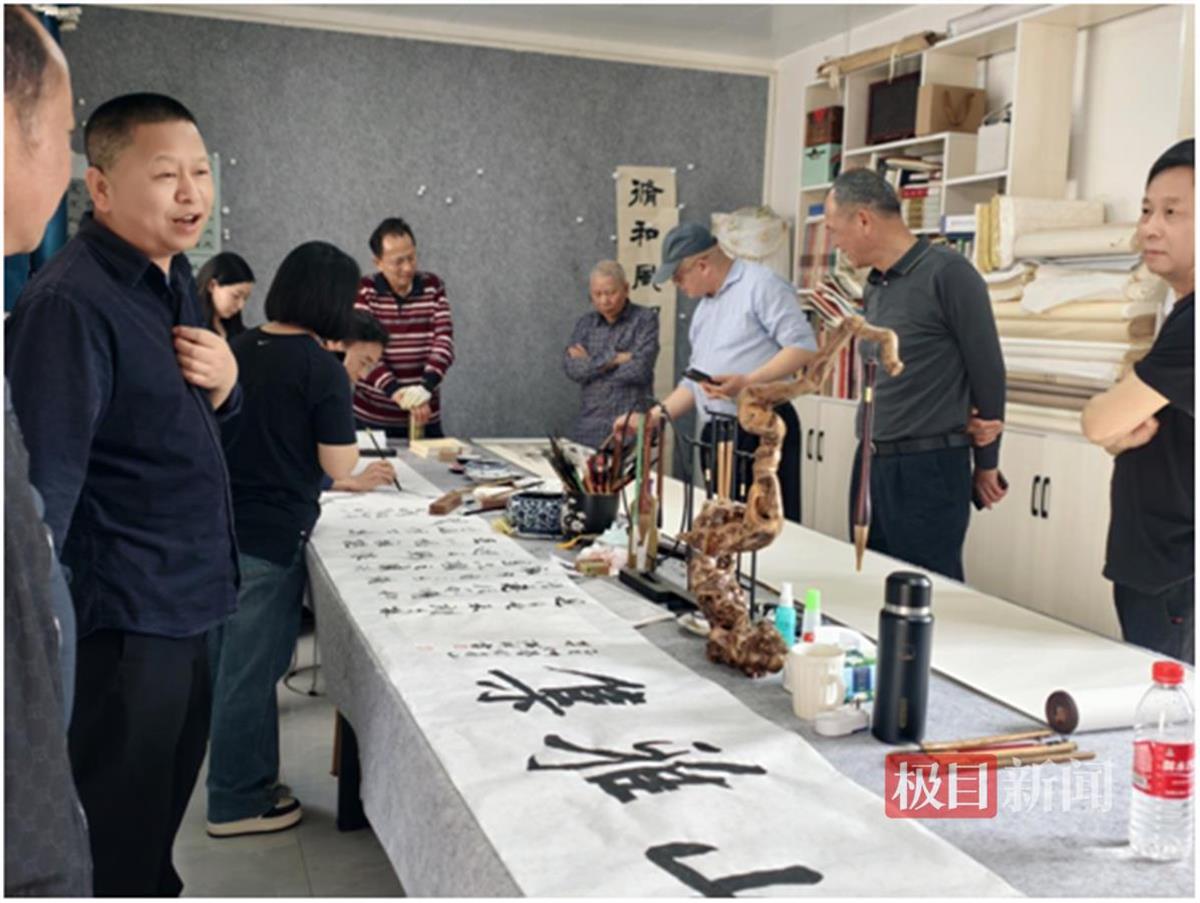 长长的卷纸上,书画爱好者泼墨挥毫,亦书亦画,笔墨或浓或淡,色彩或明或暗,有的苍劲有力,有的俊秀飘逸。作品或展示乡村新貌,或歌颂伟大祖国。