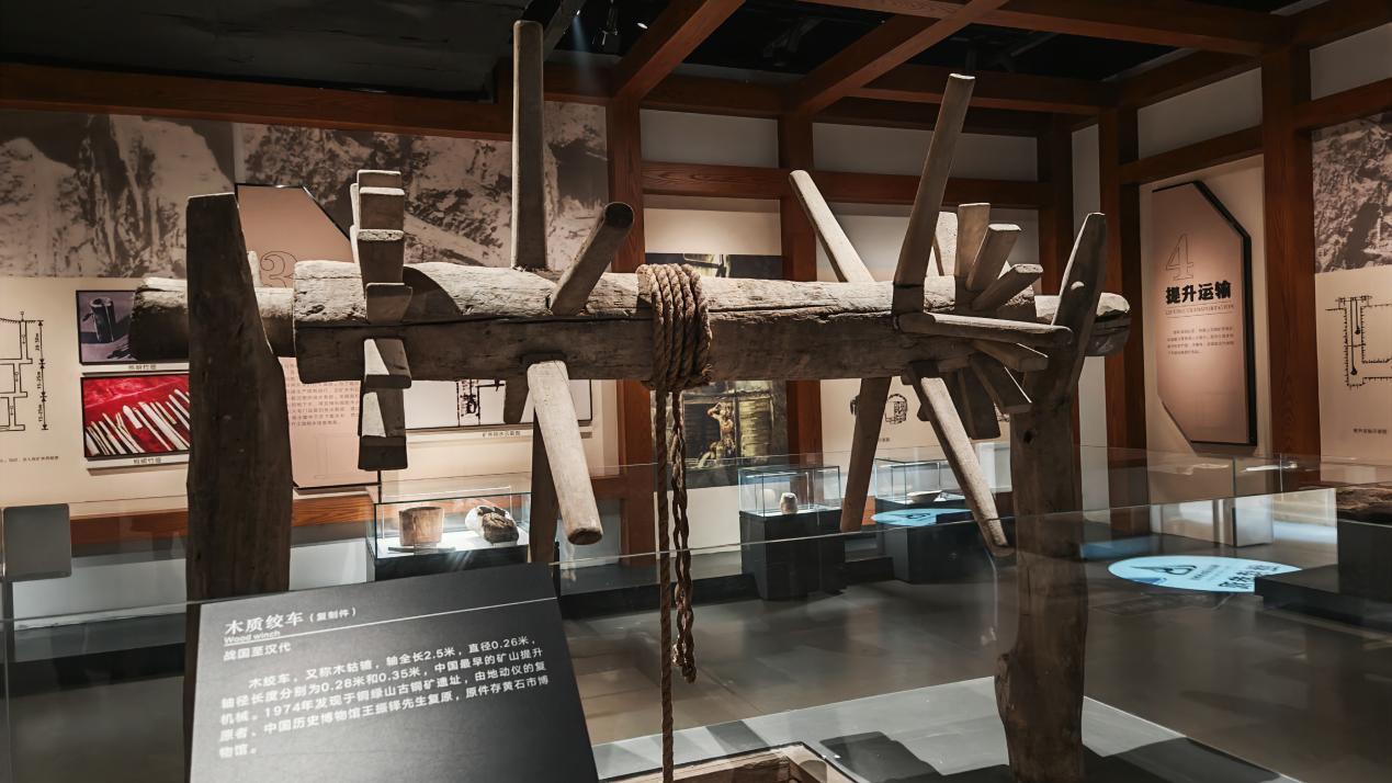 同时,矿工们还使用了中国最早的提升机械木绞车,该工具由铜绿山地区所产的坚韧的青冈栎木(该木材可供桩柱、车船、工具柄等用材)制成,轴呈圆柱形,两端砍削成圆形轴颈,两端轴颈内侧各有一圈密孔和一圈疏孔,两端密孔靠外轴,计有14个孔眼,疏孔在内侧,计有6个孔眼。轴孔皆为长方形,疏孔比外圈密孔大且深,孔的间距亦较大,均与密孔交错排列,用于在竖井中提升矿石、积水等物质……古代工匠们用聪明才智解决了地下深井一个个关键性技术难题。