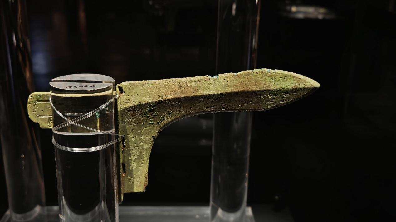 而展台内的铜斧便是寄给中国历史博物馆铜斧的复制件,该馆运用三维全息影像技术,让文物逼真地展现在广大市民面前。