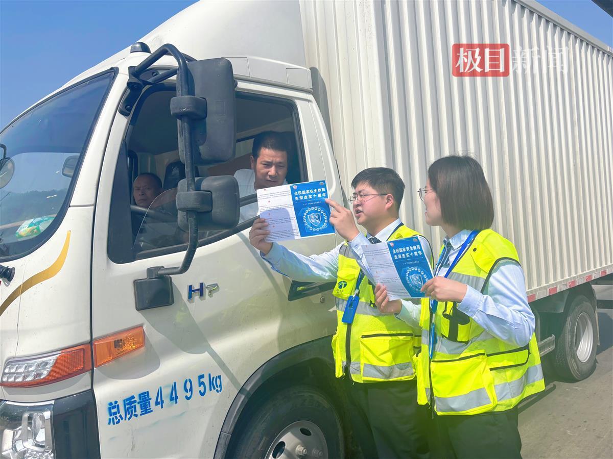 收费现场,安全宣传“零距离”。在收费站广场设置宣传展台,向司乘发放涵盖政治安全、网络安全等16个重点领域的《国家安全知识手册》,并利用情报板滚动播放宣传标语,吸引司乘驻足观看。针对行车安全与国家安全关联等热点问题,结合典型案例阐释交通法规重要性,详细讲解超限运输、破坏交安设施及行人上高速等行为的法律后果,通过以案释法增强群众爱路护路意识。