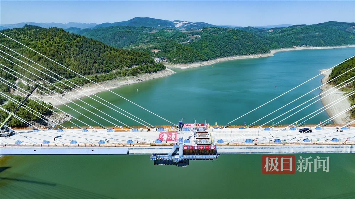 夕阳下,建设者正安装最后一道斜拉索,160根镀锌钢丝索如竖琴琴弦,即将奏响“千里秦鄂一日还”的中西部协同发展的新乐章。