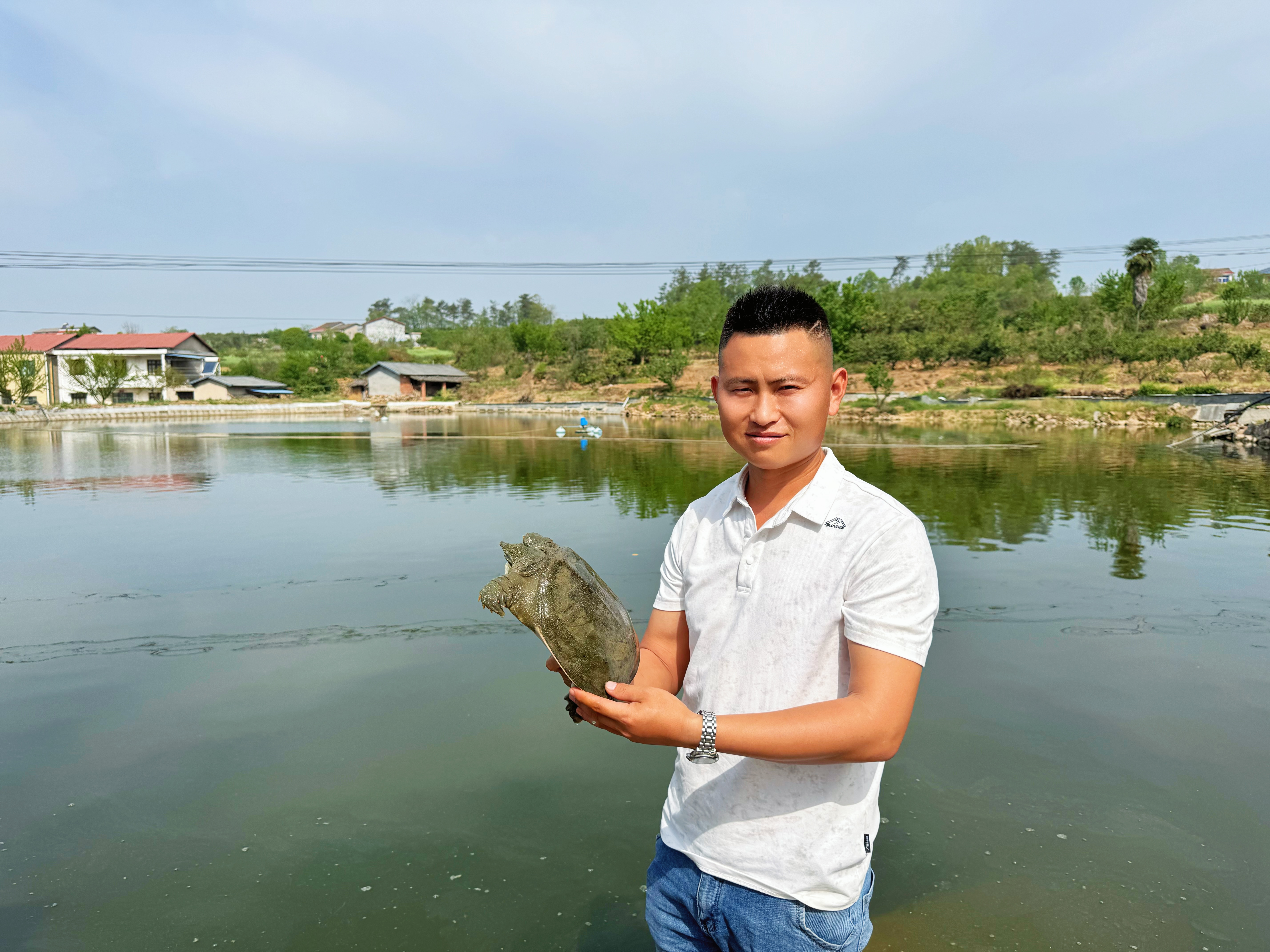 “像这个,就是在我们自家鱼塘打捞起来的生态甲鱼,这样一只可以卖到四五百块钱。”站在生态鱼塘边,吴疆俯身捞起一只肥美的甲鱼,眼里闪着光,“去年卖了2万斤鱼,今年又有不少顾客提前预订了。”
