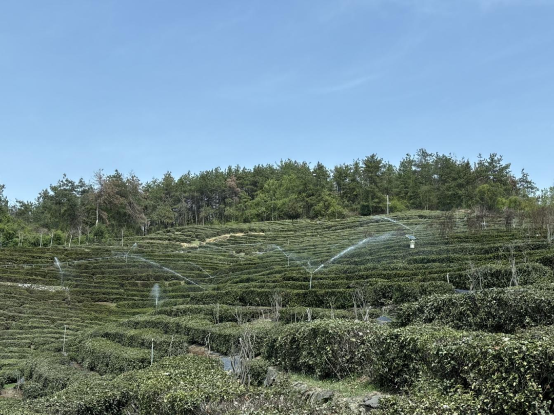 神雾茶叶集团有限公司总经理徐明兵介绍,茶场前期结合种根除草和铺设除草膜,增施有机肥,提高茶叶品质,确保提早上市,目前主要利用全自动喷灌系统,对整个茶园基地进行抗旱管护。