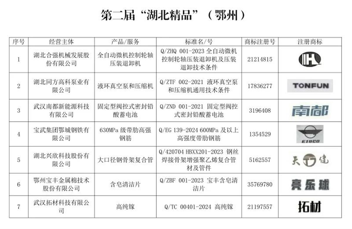 4月10日,第二届“湖北精品”名单在武汉发布,鄂州7项产品榜上有名,较首届增长75%,增幅居全省前列。