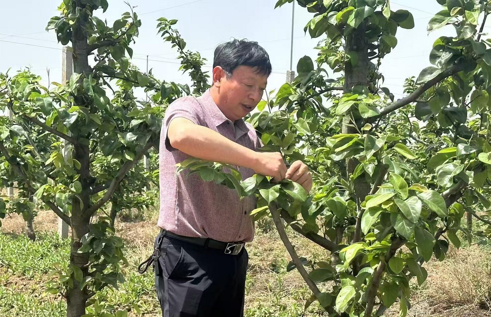 周家文凭借丰富的种植经验,参与制定《百里洲精品砂梨种植技术规范》,指导梨农按标准进行生产,帮助解决各种疑难问题。