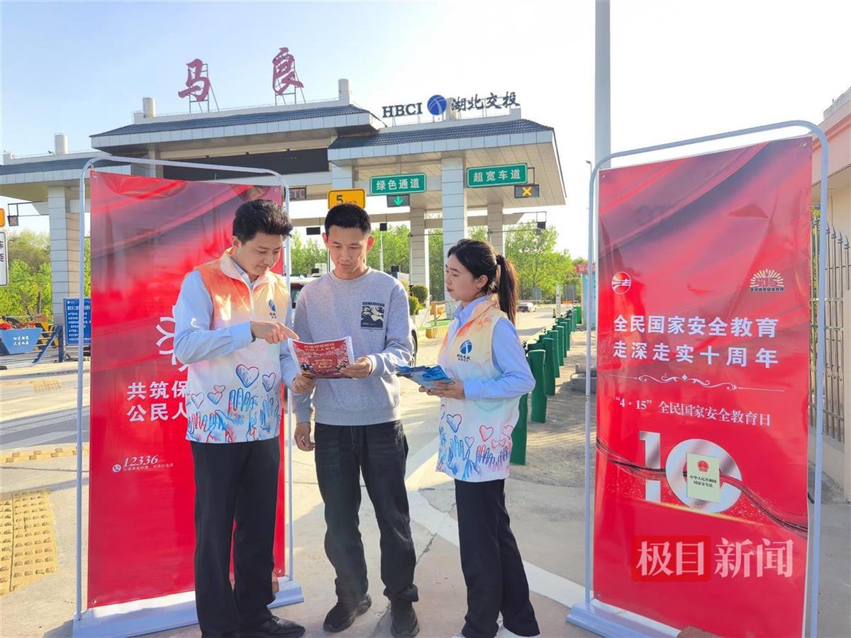 在高速公路沿线,湖北交投集团在各收费站、服务区设立志愿服务台,张贴宣传海报,布置宣传展板,悬挂宣传横幅,并利用收费广场电子显示屏滚动播放宣传标语。志愿者们向过往司乘发放宣传册,向他们普及国家安全知识。