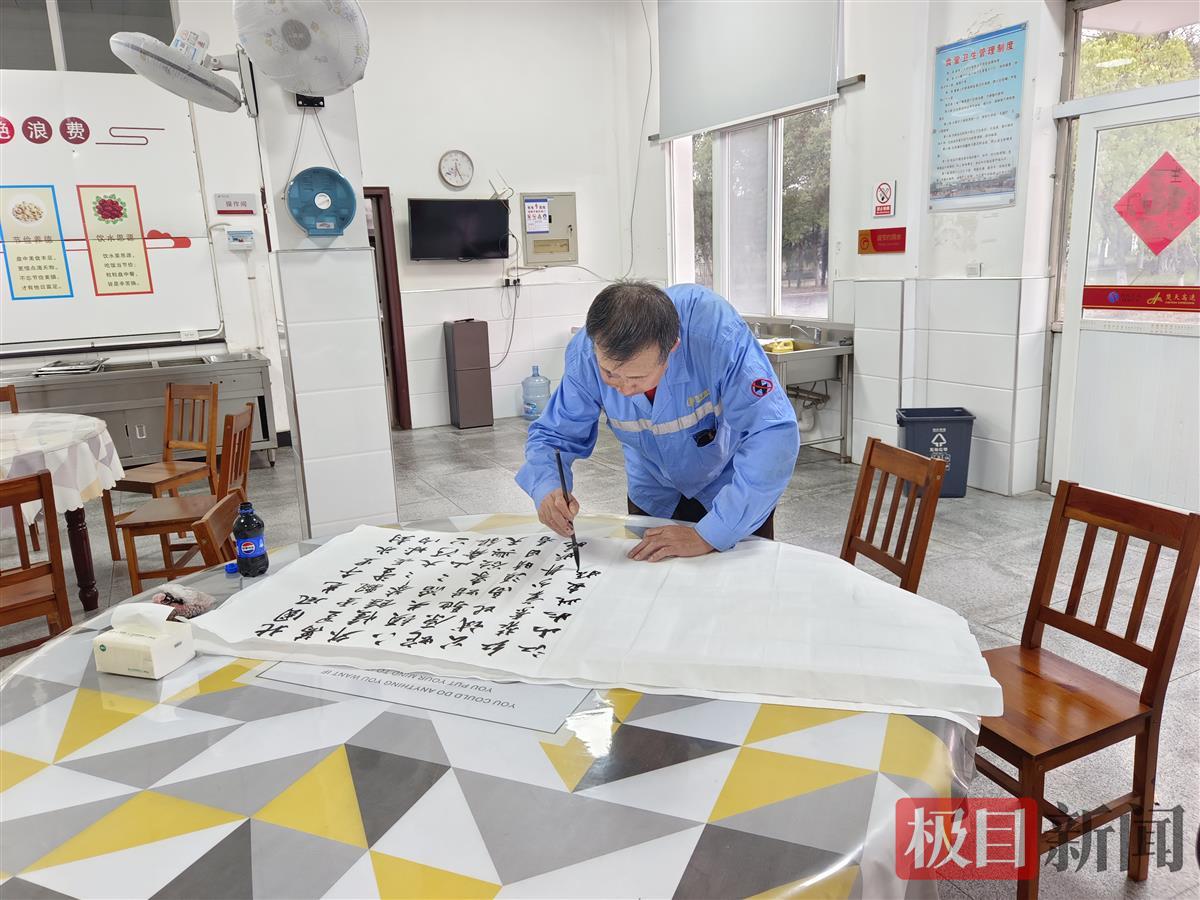 司机现场写下书法作品,赠予“爱心小屋”