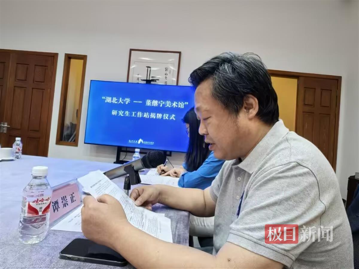 “湖北大学与董继宁美术馆携手共建研究生工作站,意义深远。这必将是艺术传承与创新的新平台,是校地协同发展的新纽带,是文化惠民育民的新窗口。”区委常委、宣传部部长丁玲信心满怀地表示,该区将依托湖北大学学术资源和董继宁美术馆艺术实践优势,提供“理论+实践”的双重滋养,培养更多兼具学术素养与创作能力的艺术人才;进一步推动高校智力资源与地方文化需求对接,为咸安文旅融合、乡村振兴注入艺术动能,让文化成果惠及更多人民。
