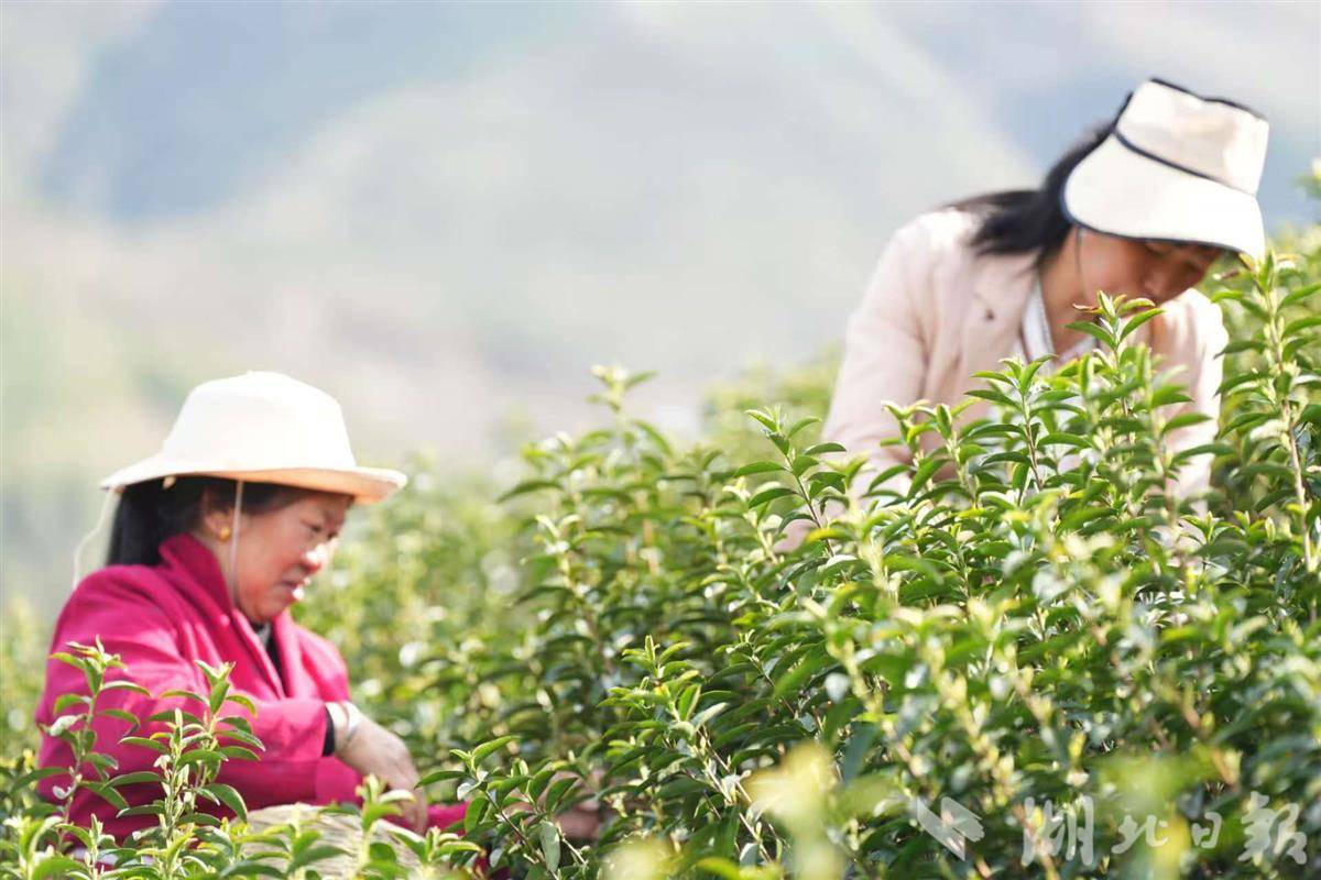4月2日17时许,咸宁市通山县燕厦乡畅周村白茶基地,数百名采茶工散落在10多个茶山坡面。苍穹之下,3000亩茶园面前,他们个个背着背篓,穿梭在茶树之间,手指在枝头灵动飞舞,抢采明前茶,一片繁忙景象。
