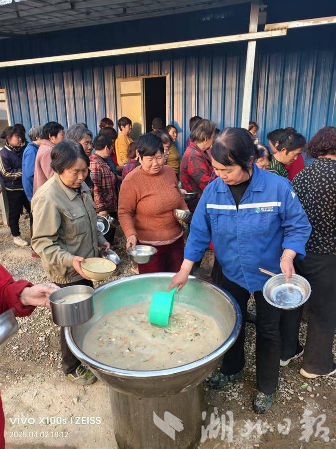 此时,另一座山腰平地上,一个临时建起的生活区,聚集了一群特殊的采茶工。他们有160多人,全部来自河南洛阳。在那里,也设了一个收货点。同样是验收、过秤、开票、领款,之后便直接是开饭时间了。热气腾腾的馒头、刚出锅的胡辣汤,配上一碗稀饭,在通山的茶园里,茶工们吃到嘴里的,依旧是地道的河南美味。