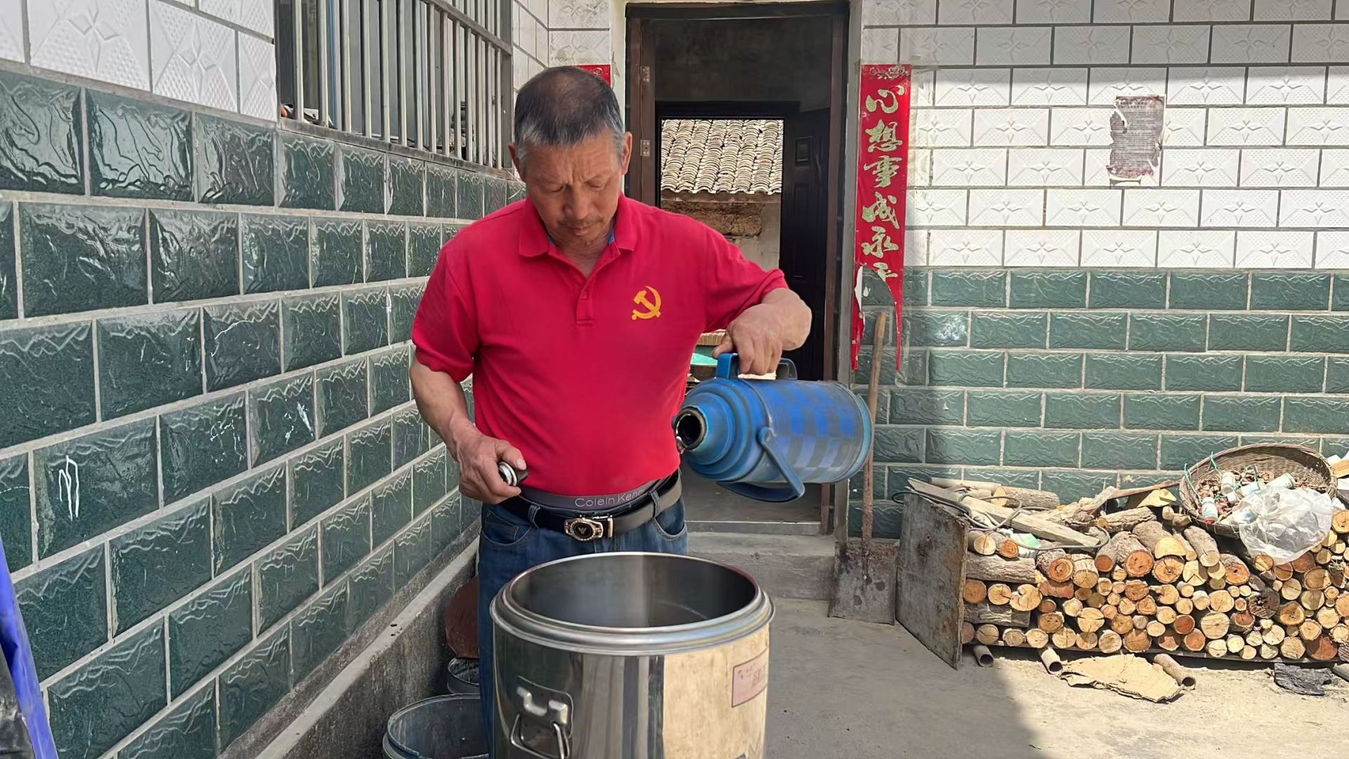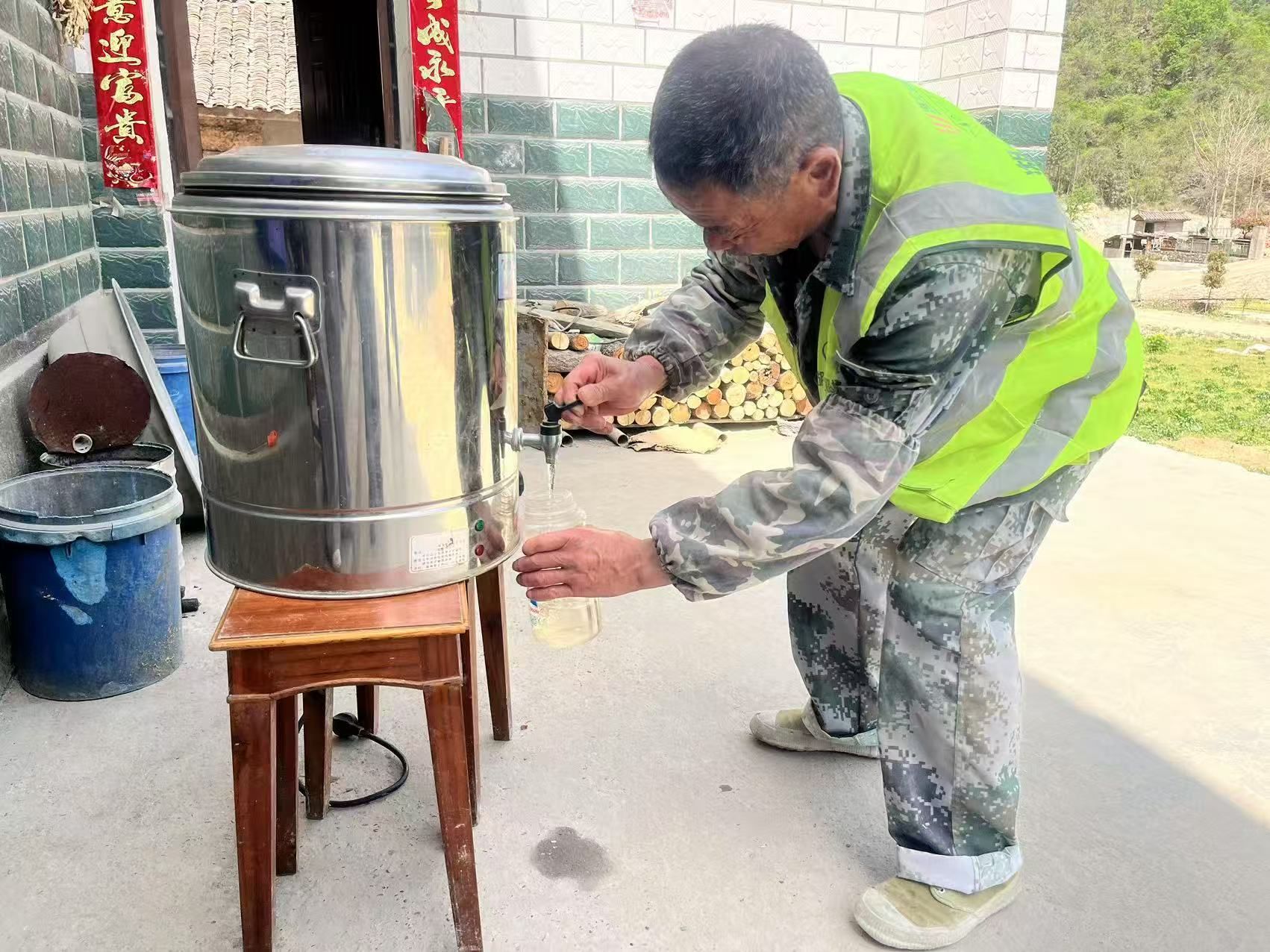 舒登柱说:“当时孩子在家里,我就跟他们说,自己忙也好累也好,水这个事你们不能断,还是要给我摆上,那是替我做事,要天天摆在那。”
