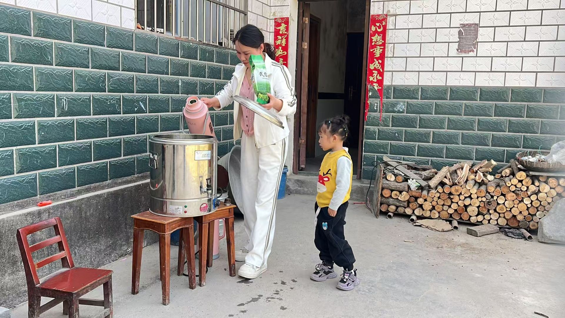 舒登柱的言传身教也深深影响着他的一双儿女,每逢节假日,儿女便回家帮他烧水送茶。2016年新房落成时,他特意在临街墙边砌了水泥平台,方便路人取茶。