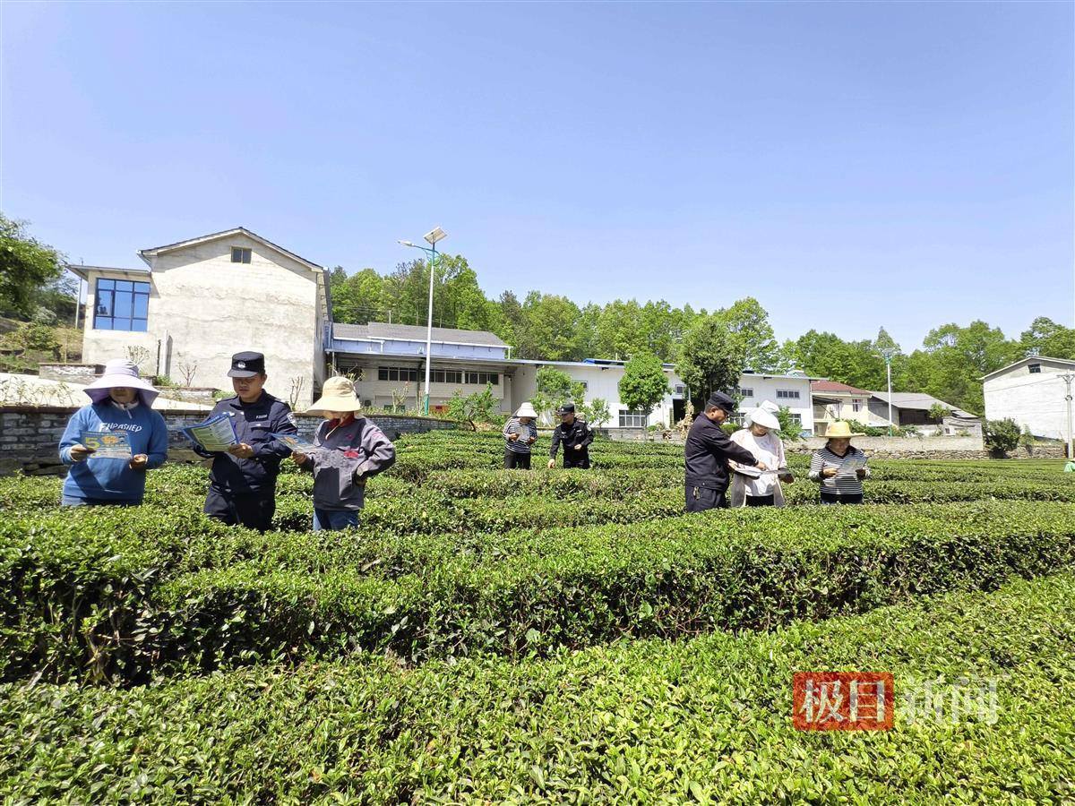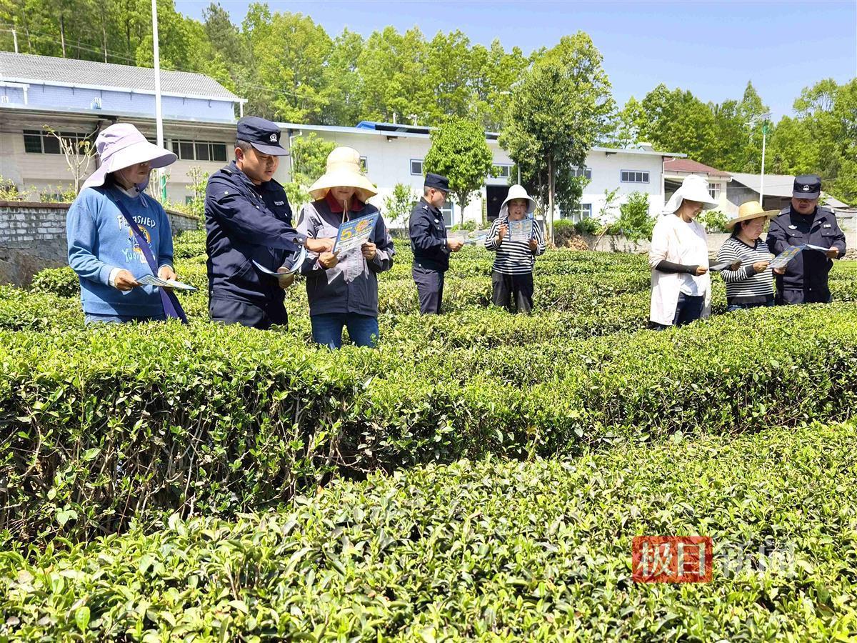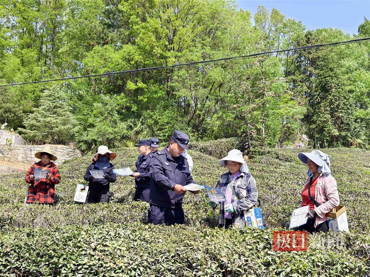 民警向茶农宣讲反诈知识(通讯员周佳欣 摄)