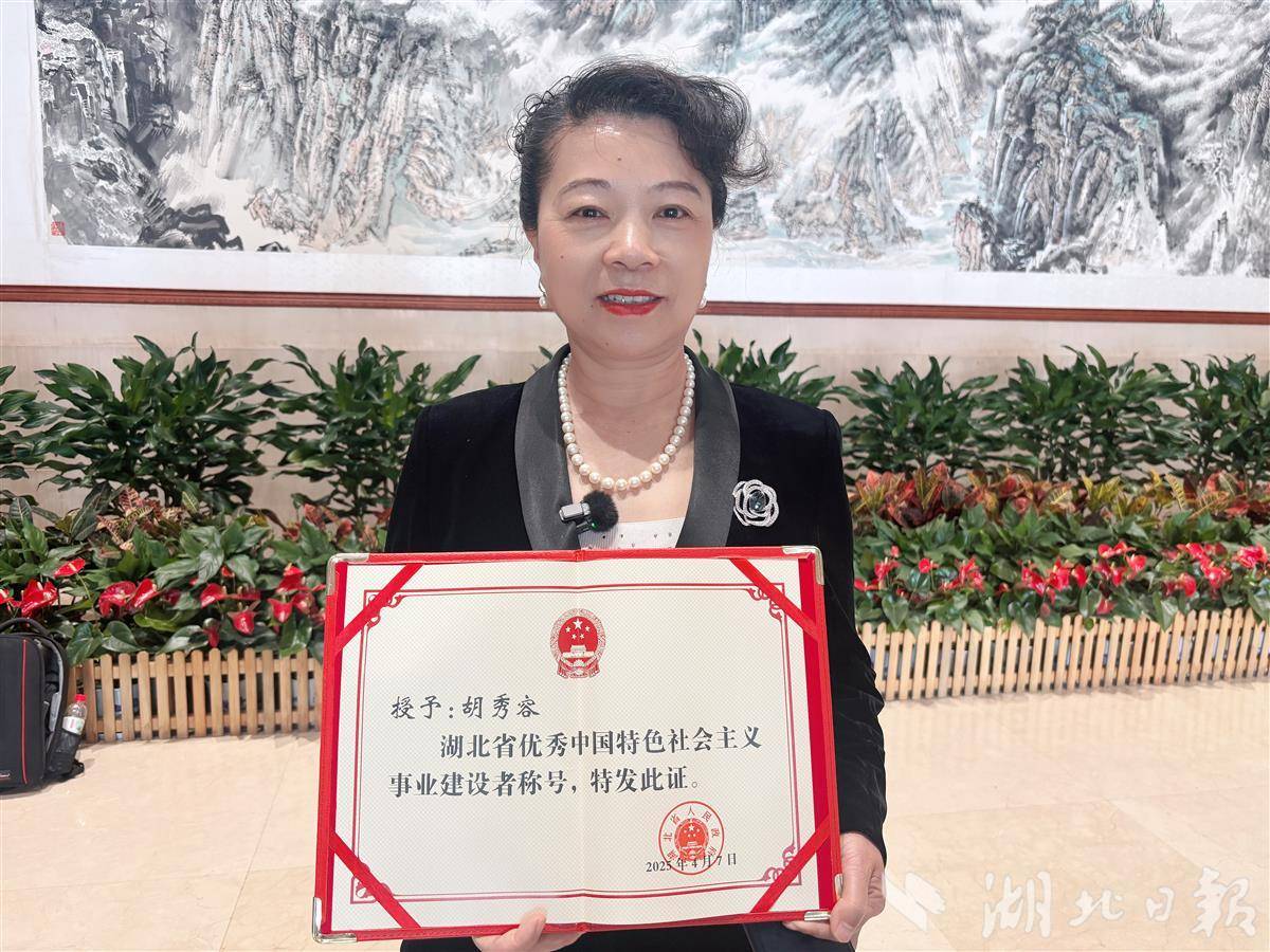胡秀容,四川乐山人,湖北小胡鸭食品有限责任公司董事长。当天的大会上,她被授予“湖北省优秀中国特色社会主义事业建设者”称号。