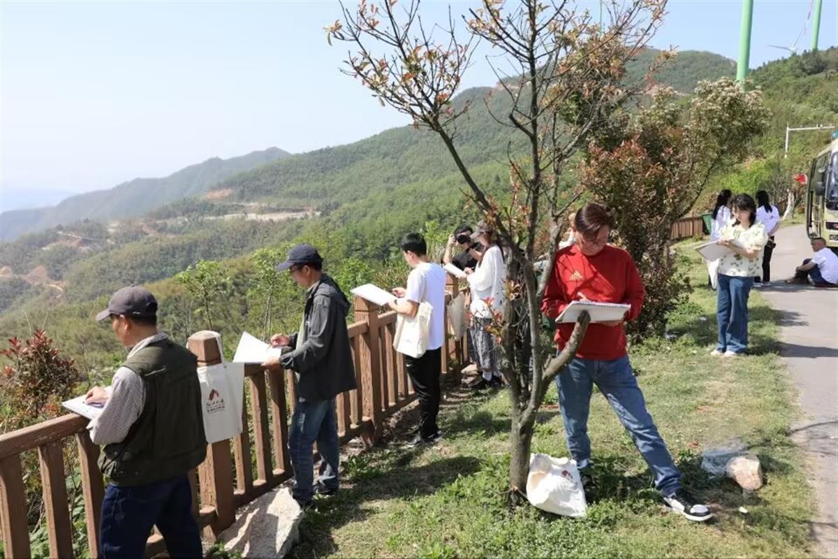 在白云山、大幕山,采风团队或站在大幕山顶俯瞰鄂南乡村,或在古民居村湾观景,或在田野找老农攀谈……看到一条条平坦宽阔、蜿蜒于山水田园间的农村公路,闻到桃红李白的花香与白墙黛瓦的民居古色古香相互映衬,听到金色的油菜花正褪色结荚的声音,艺术家们无不心潮澎湃,纷纷支起画架,拿出画笔,端起相机,用镜头与画笔对准勤劳的村民及古民居、现代化的农业设施大棚、在公路上穿梭的车辆,用心定格家乡的美丽变化。
