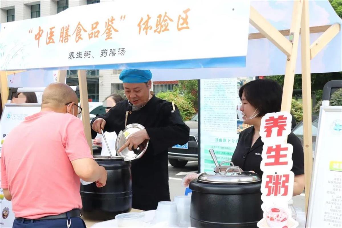 中医专家针对谷雨节气特征,开方调制藿香健脾化湿茶、养肝明目茶、祛湿减脂茶、祛湿四宝粥等养生茶粥;多种中药材熬制而成的补虚生津老鸭汤,独特的香气吸引无数人驻足;青青艾草甘露饮、轻甜槐花蜜酿两款精致的时令糕点深受小朋友的喜爱。精心调配的养生膳食不仅口感极佳,更蕴含着深厚的药食同源理念,让市民体会一把“舌尖上的养生”。