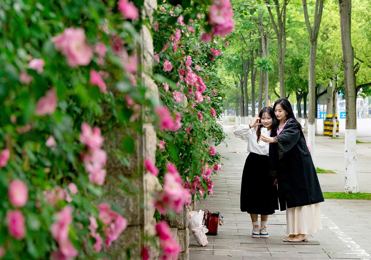 4月21日,湖北黄石市下起了小雨。但在下陆区湖北理工学院门口围墙上和路边的花坛内,爬满院墙的月季花已经次第开放,绵延400余米,成为一道名副其实的“花墙”,吸引了络绎不绝的赏花人和拍照者。这里,成为了黄石又一处新晋的网红打卡地。