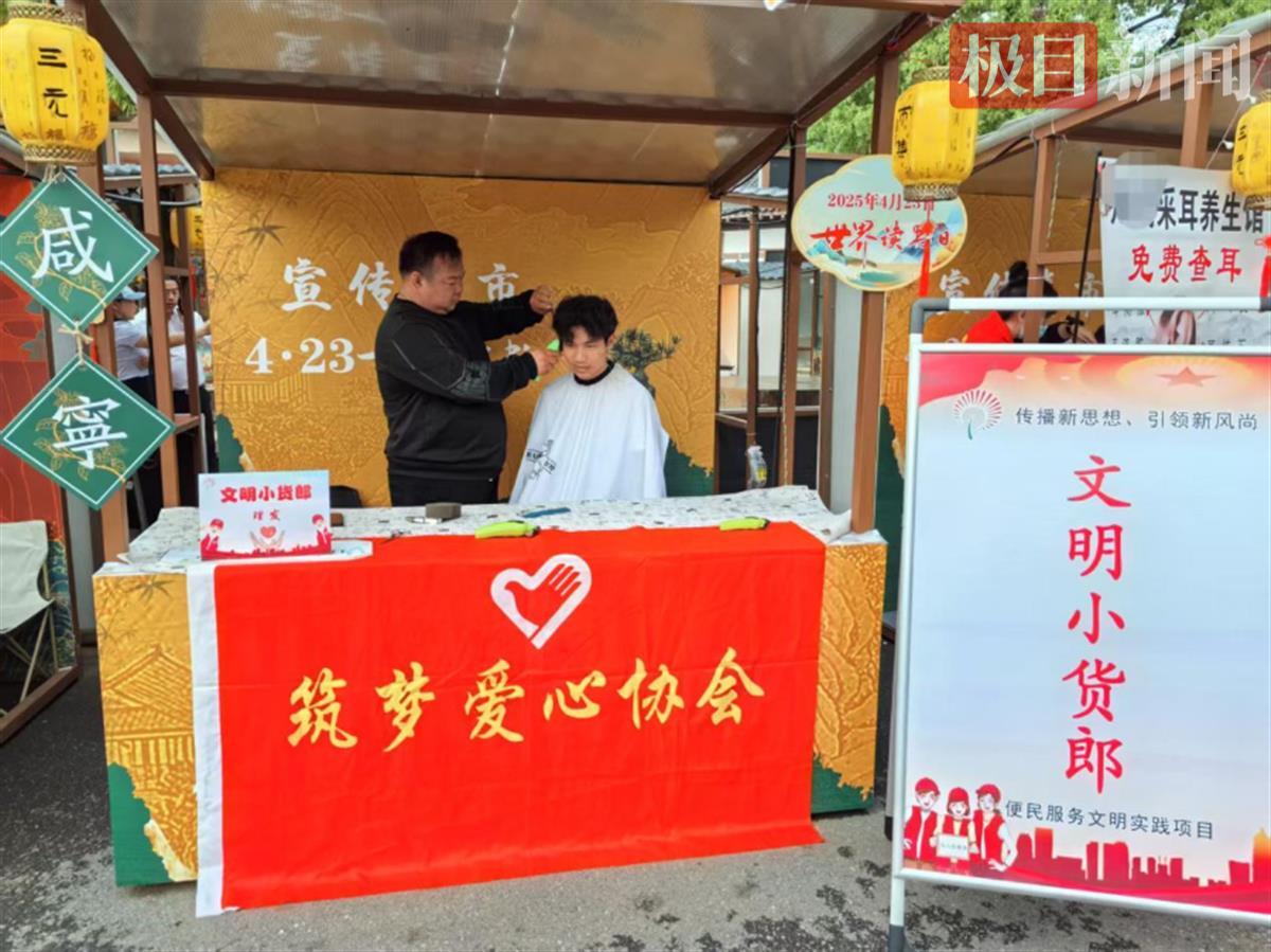 活动开始前,“文明小货郎”志愿者们早早便携带着理发工具、采耳器具及中医诊疗设备、口腔检查设备等,在“文明集市”展区有序布展。志愿者们热情洋溢的笑容、贴心的便民服务和移风易俗有奖问答送门票活动,吸引了众多市民驻足。“今天不仅能挑选心仪的书籍,还能享受暖心服务,太期待了!”活动尚未开始,市民李女士便带着孩子早早来到现场。