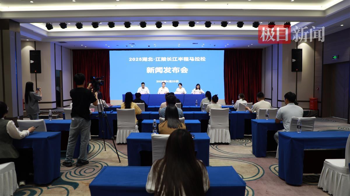 4月23日,湖北省江陵县举行2025湖北·江陵长江半程马拉松新闻发布会,向公众介绍赛事相关情况。