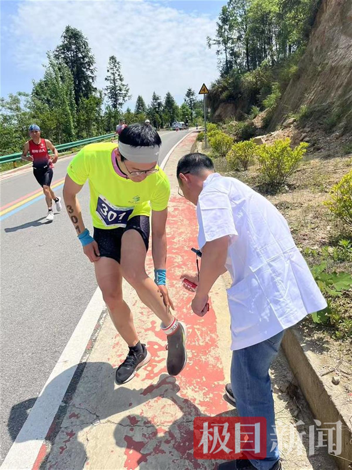 医疗保障队伍在赛道上的17处医疗救护保障点(哨),及时有效地为参赛选手临时处理伤痛