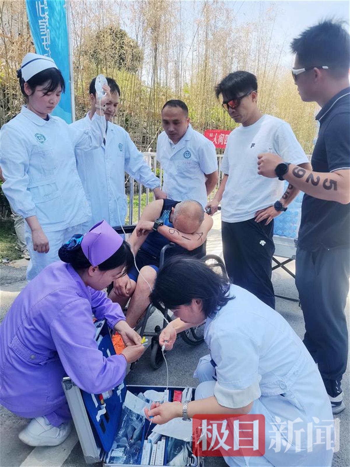据了解,在26日的赛事现场,浠水县卫健局医疗保障队伍在赛道上的17处医疗救护保障点(哨),及时有效地为参赛选手临时处理伤痛350余人次,其中现场救治了1名下水游泳的失温选手,还在第一时间转运了3名摔倒的骨伤选手和高温中暑选手到医院进行救治。
