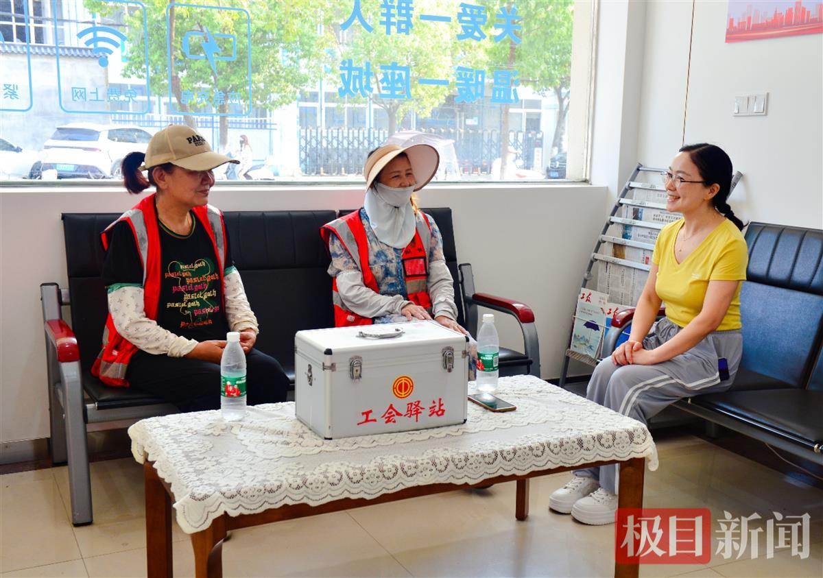 清洁阿姨在工会城市驿站休憩 通讯员 彭涛摄