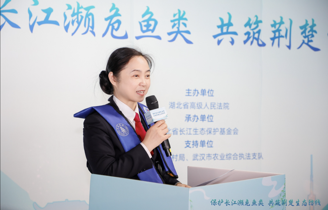 作为长江流域生态环境保护的司法守护者,湖北省高级人民法院党组成员、副院长陈旗在致辞中表示“保护好长江的生态环境,是我们法院人义不不容辞的责任与使命,也是我们所有长江儿女共同的重任与担当”。近年来湖北省高级人民法院在习近平生态文明思想和习近平法治思想的指引下,在省委建设美丽湖北战略的部署下,在社会各界的关心帮助和支持下。在过去一年,全省各级法院放流1715.05万尾鱼苗。“我们还通过搭建跨省环境保护司法协作平台、构建长江大保护行政执法与司法协调联动机制、建立170余个长江生态环境司法保护基地等重要举措,为破解长江流域“九龙治水”困局提供了湖北方案。