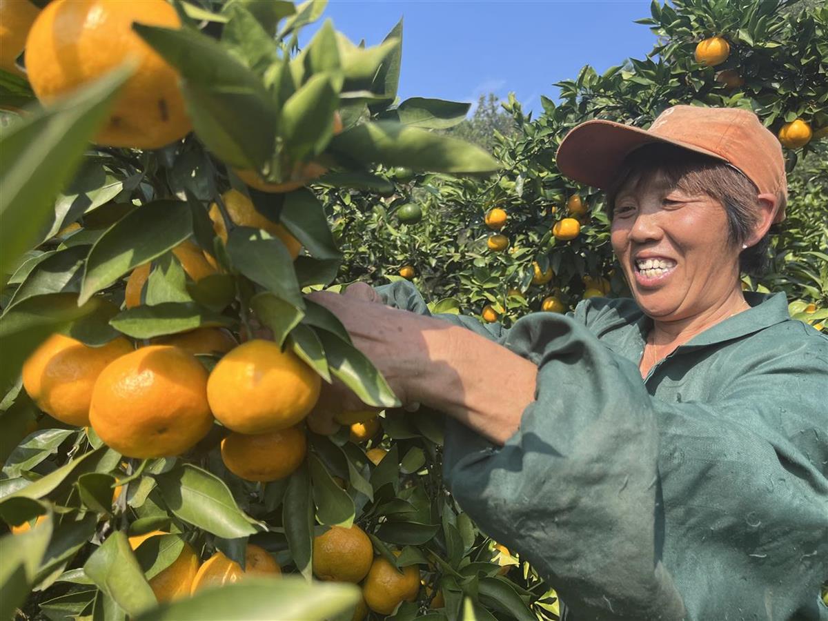 熊兆珍整理门前的200亩橘园