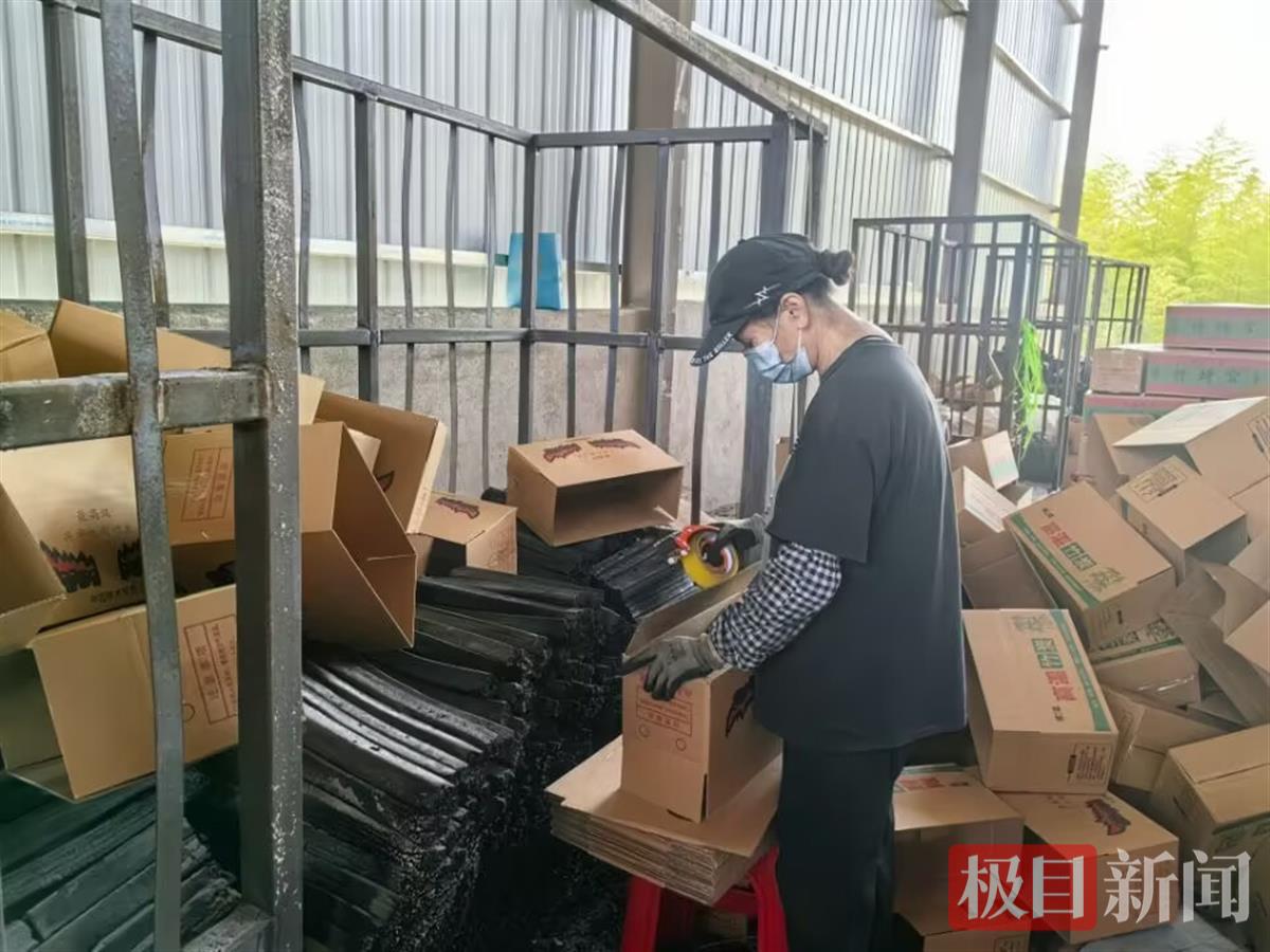 “你看这个竹炭光泽度多好!稳定燃烧可达4小时以上,无烟无味,而且滴油不起火,直供东北,市场供不应求呢。”4月28日,走进咸安区浮山街道白鹤村亿达竹业有限公司,100余吨优质碎竹丝堆积如山,经过发酵、粉碎、滚筒高温烘干、高温螺杆压缩、炭化、冷却等工序,一截截黝黑的竹炭完成“锻造”,工人们正麻利地打包装箱。