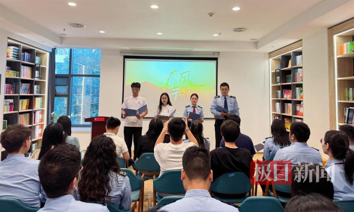 在共读环节,洪山区税务局青年干部以《“税务蓝”助力“发展红” 在支点建设中勇担税务使命》为题开展“五四”青年宣讲,携手武汉理工大学学生代表共同朗诵诗歌《春风予你》,并现场观看了武汉理工大学宣传片《时代的回响》,生动展现了税校同心、携手前行的美好画卷。