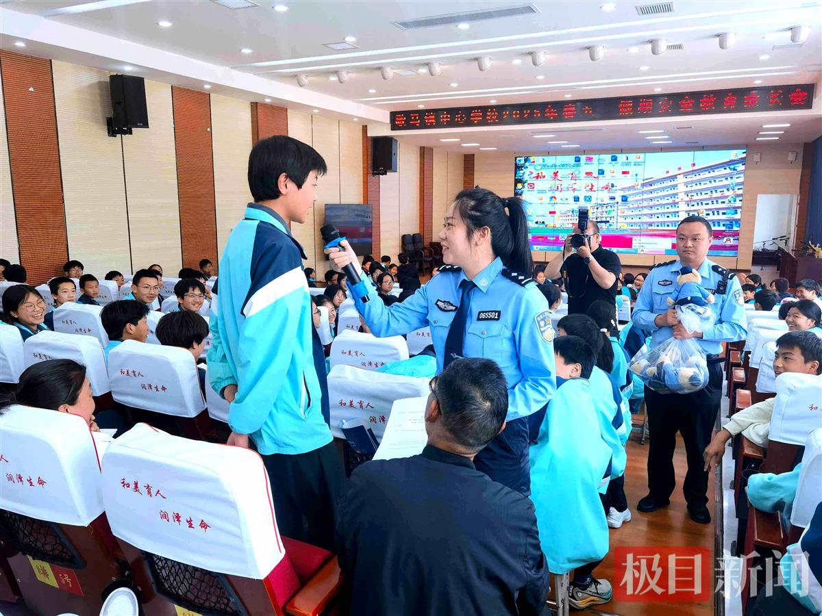 “今天设有互动问答环节,答案都在接下来的宣讲内容中,谁能正确回答问题,就能获得我们送出的‘警察小熊’和安全头盔等礼品。”宣讲活动中,民警运用生动形象、通俗易懂的语言,向学生和家长就防溺水、防性侵、禁毒及遇险自救等方面的安全常识进行了普及,围绕道路交通安全、防范电信诈骗、防校园欺凌、未成年人保护等相关知识进行了深入浅出的宣传讲解。