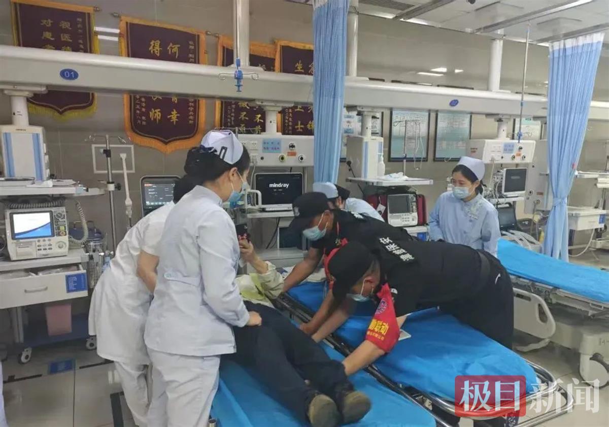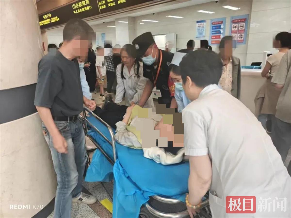 医护人员和医院安保人员联手转运女子急救。(受访者供图)