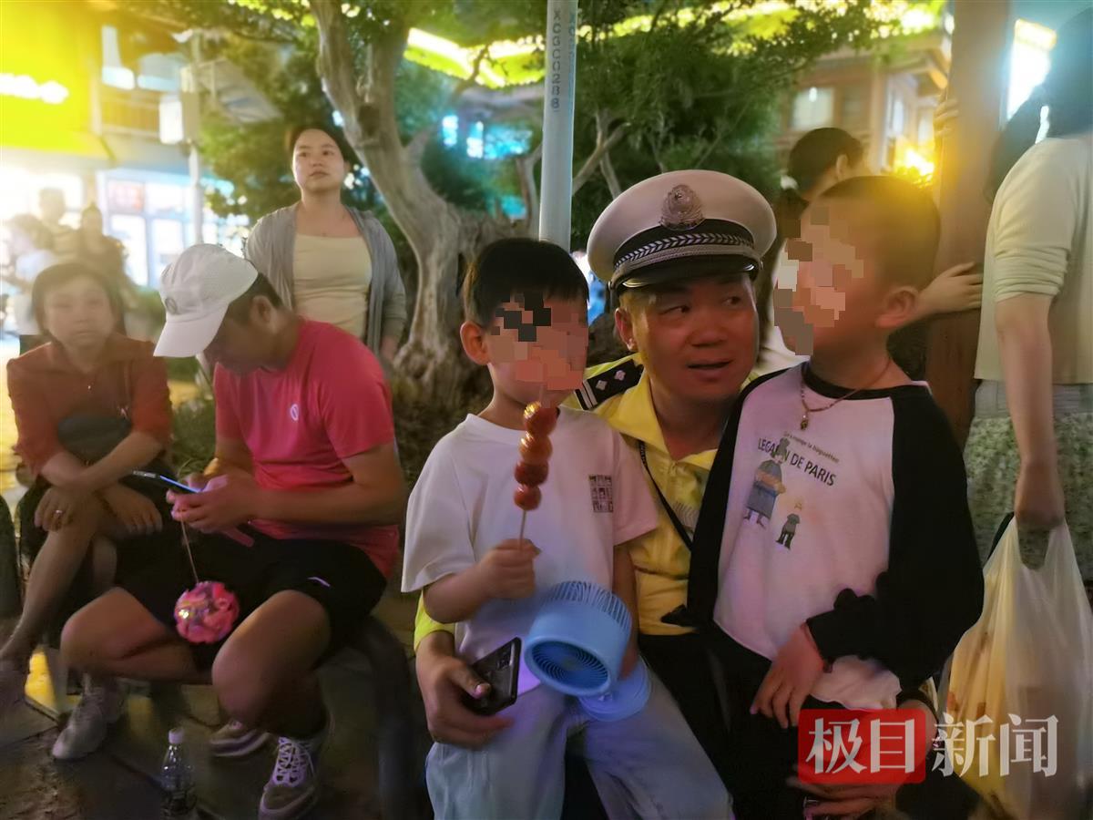 当晚,一名热心群众领着满脸泪痕的萌娃匆匆求助。经了解,孩子因景区人潮拥挤与姐姐走散,面对民警询问时紧张得不停哭泣。吕牟华立即将孩子抱到怀中轻声安抚,递上温水缓解情绪,随后迅速向110指挥中心反馈孩子体貌特征,为后续寻亲搭建“信息桥梁”。