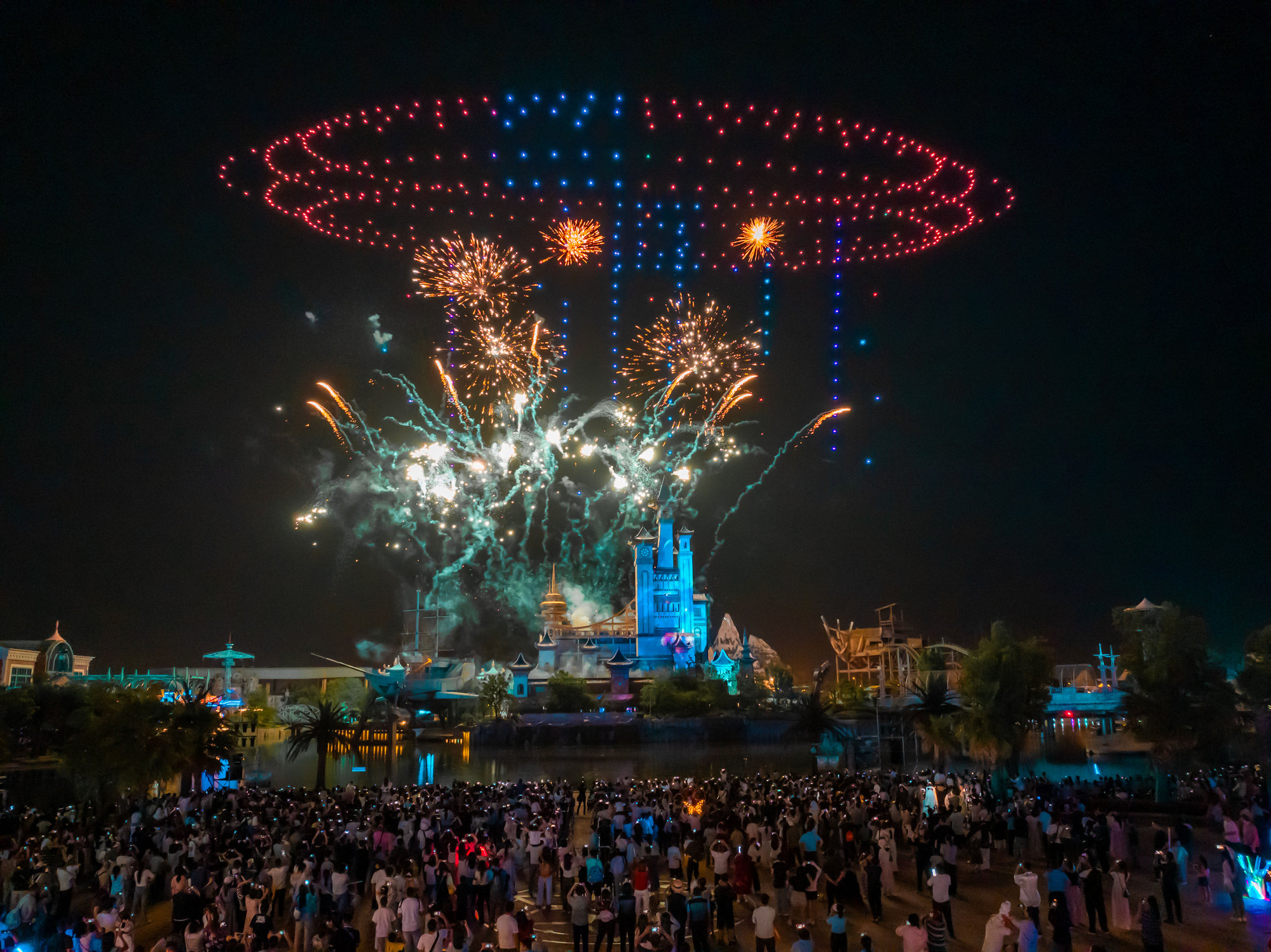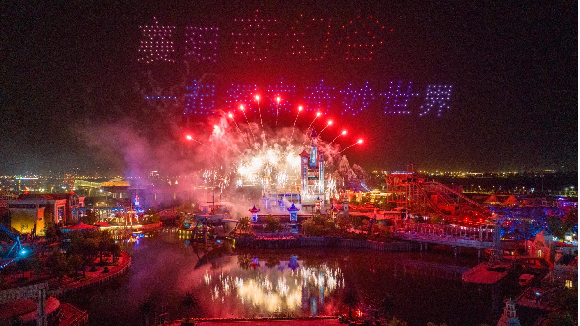 襄阳华侨城奇幻度假区内“无人机+烟花+7D光影”表演(央广网发 襄阳市文旅局供图)