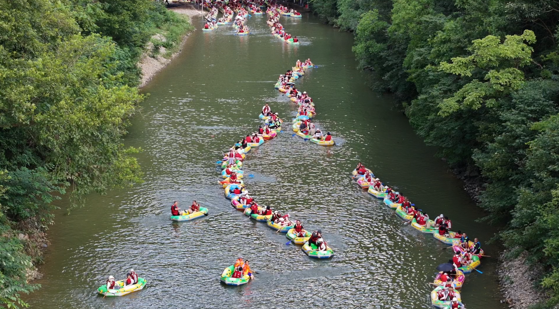 踏入绿林山风景区,美人谷内游人如织,新落成的迎宾瀑水声潺潺,水雾在阳光下折射出七彩光芒,引得游客纷纷举起手机记录这梦幻瞬间;仙侠小院古色古香,身着汉服的游客穿梭其中,宛如穿越时空。而鸳鸯溪漂流也于“五一”期间正式开漂,游客们乘着皮筏艇顺流而下,尖叫声与欢笑声此起彼伏,体验了一段惊险刺激的漂流之旅。
