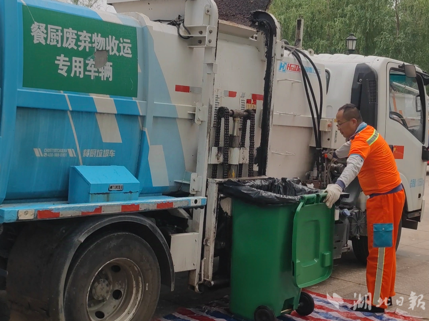黄陂区龙虾节分会场,环卫人员正在收运餐厨垃圾