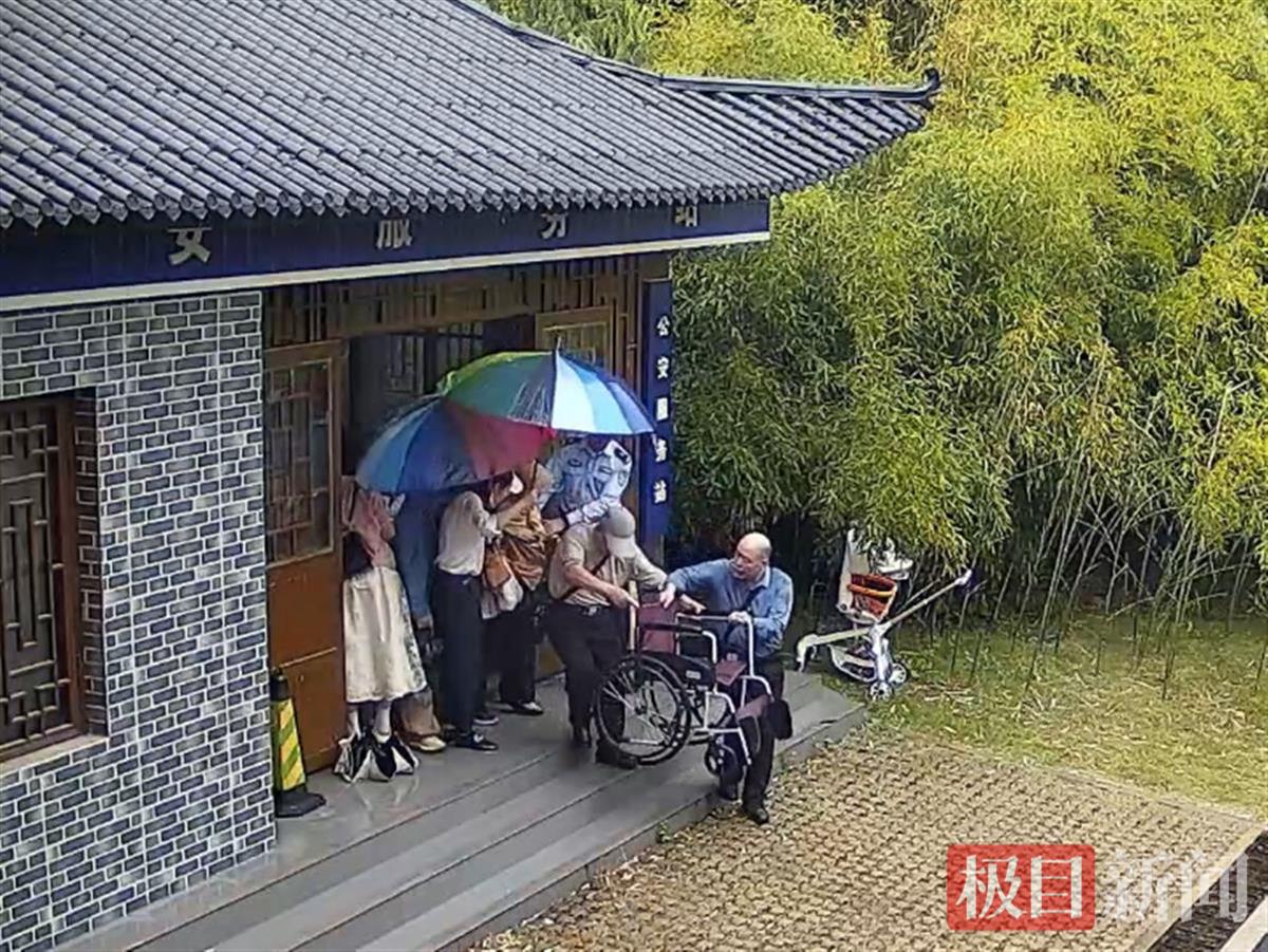 “雨小了不少,大家赶紧走吧,待会又堵车了。”这场雨来去匆忙,留下满地清凉,雨势渐歇,警务室也逐渐恢复了宁静,王岩推着轮椅将王先生一家送出景区,扶着老爷子上了警车,警灯闪烁,是襄阳人热情好客的最佳写照。