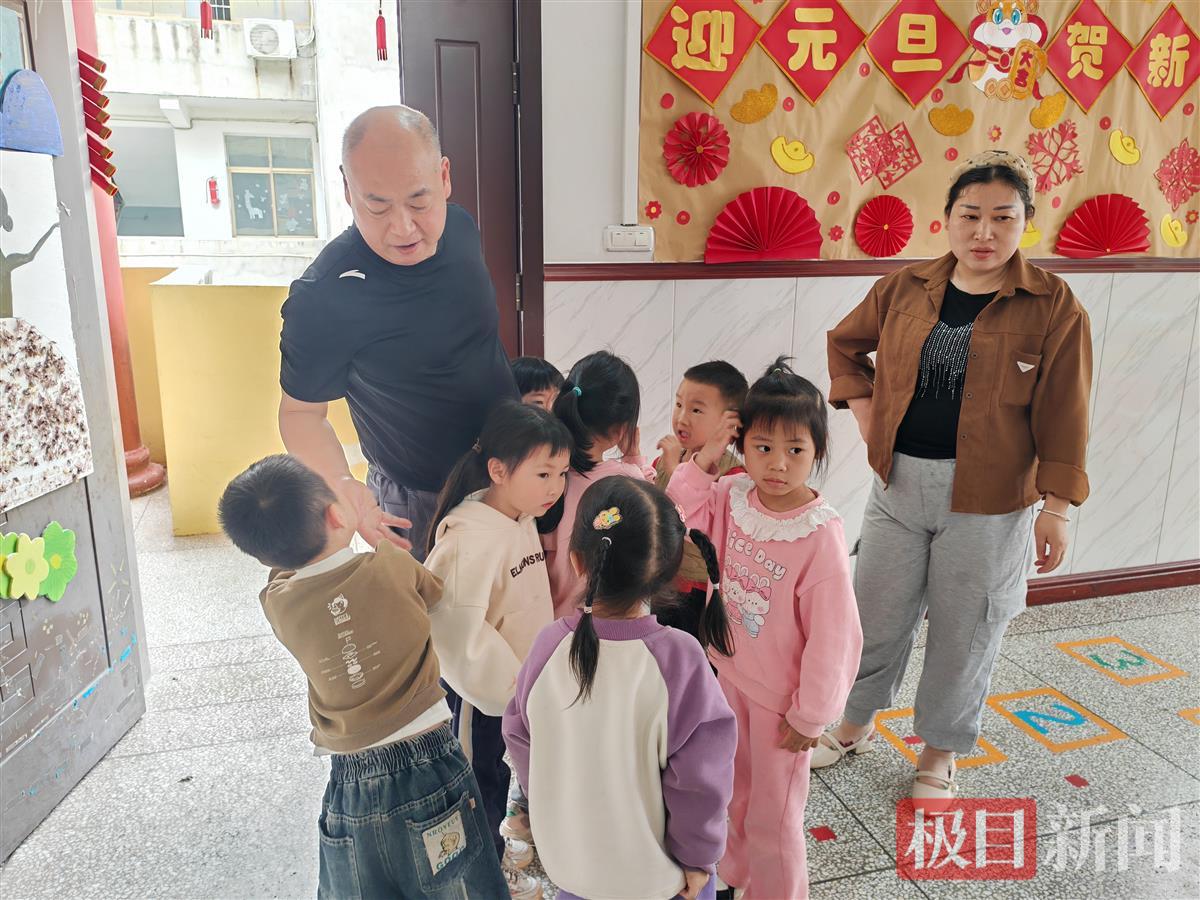 徐新元在幼儿园和孩子们互动