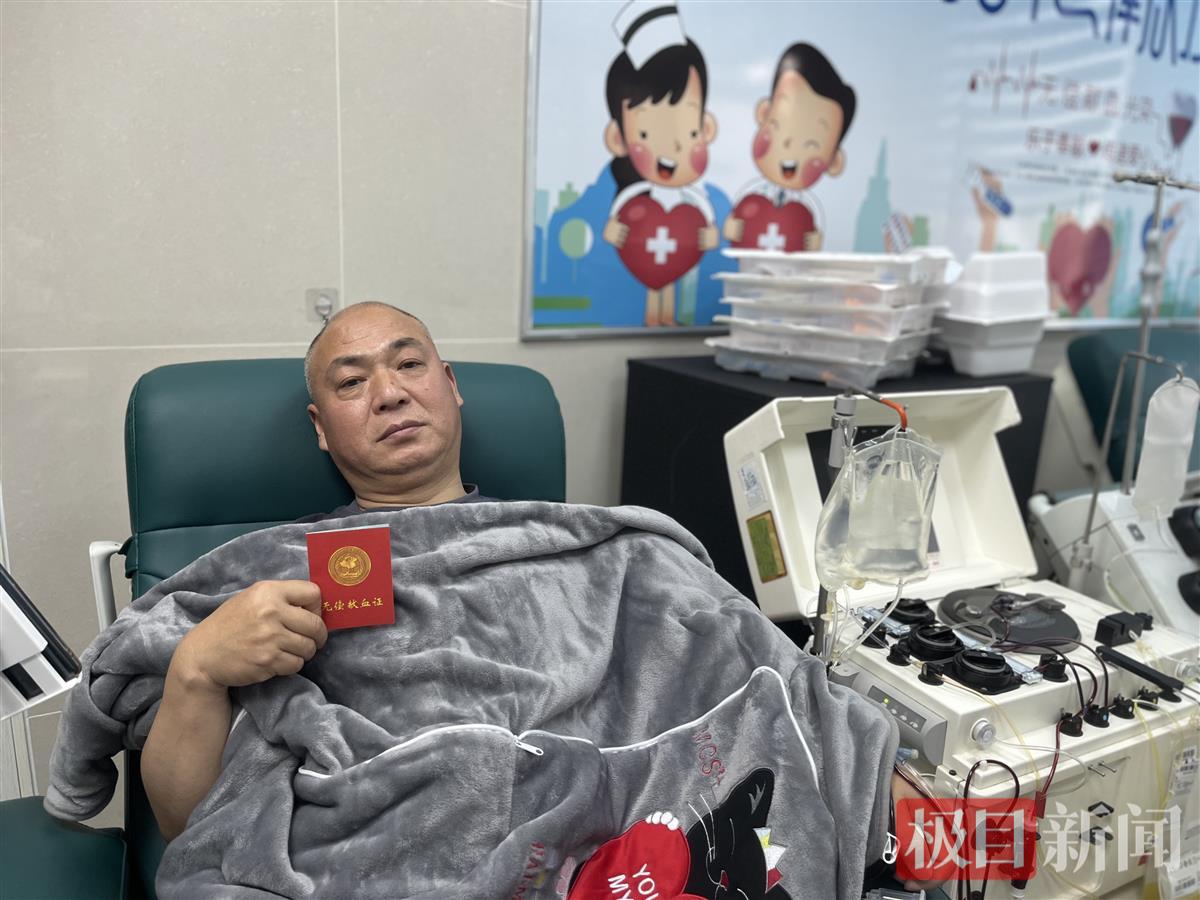 “我的血液能救别人的性命,我感觉到很自豪!”5月6日,在黄石市开发区·铁山区太子镇红太阳幼儿园内,53岁的徐新元接受新闻记者采访时开心地说。这位坚持献血17年、累计献血量达24400毫升的硬汉,在10多天前完成了第97次献血,成了其人生中又一次重要的“生命接力”。成年人身体血液总量大约在4000至5000多毫升,徐新元献出的血相当于抽干了自己身体5次的血液总量,达到自己体重的一半。