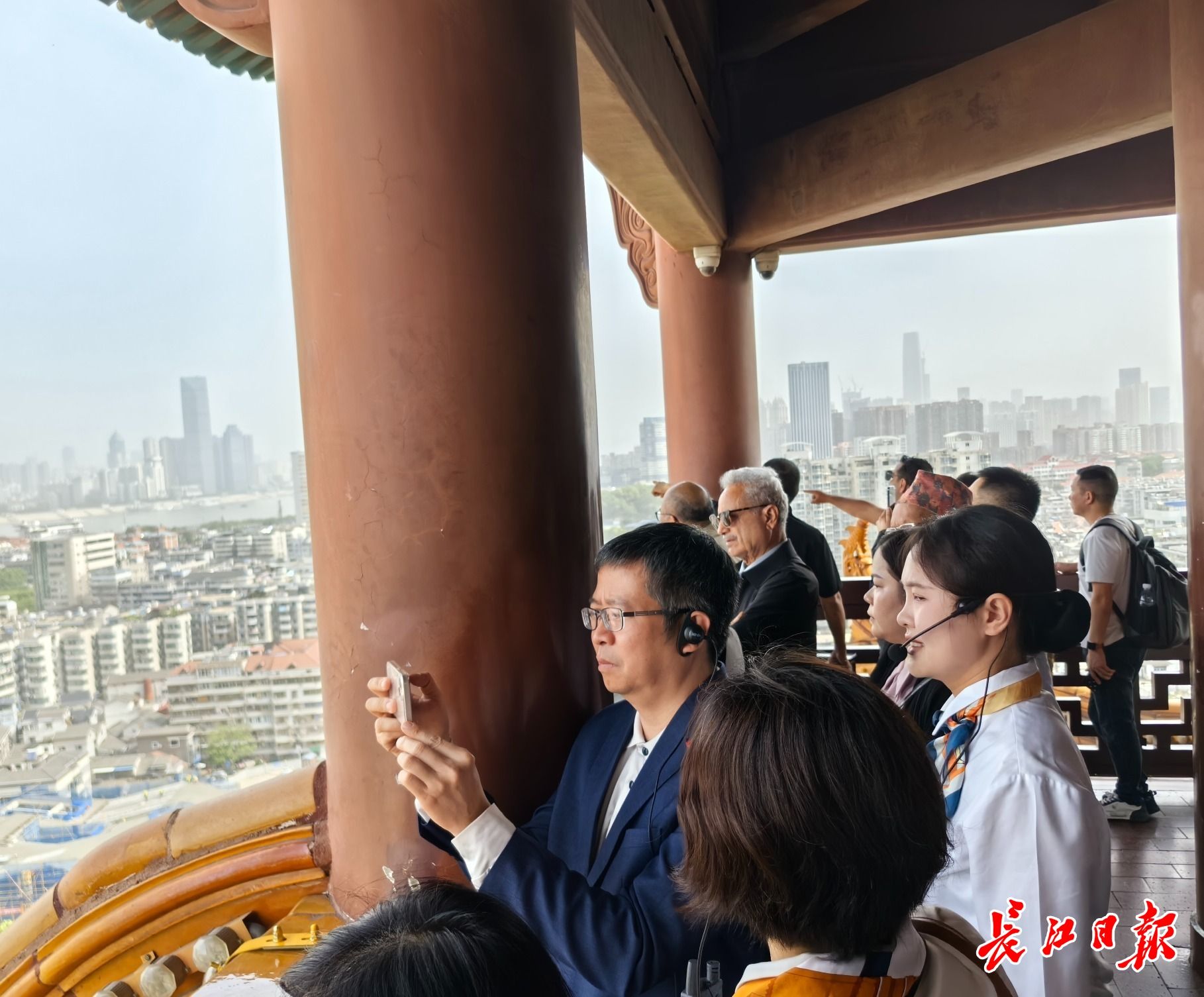 越南驻华大使范清平在黄鹤楼上拍摄两江四岸美景