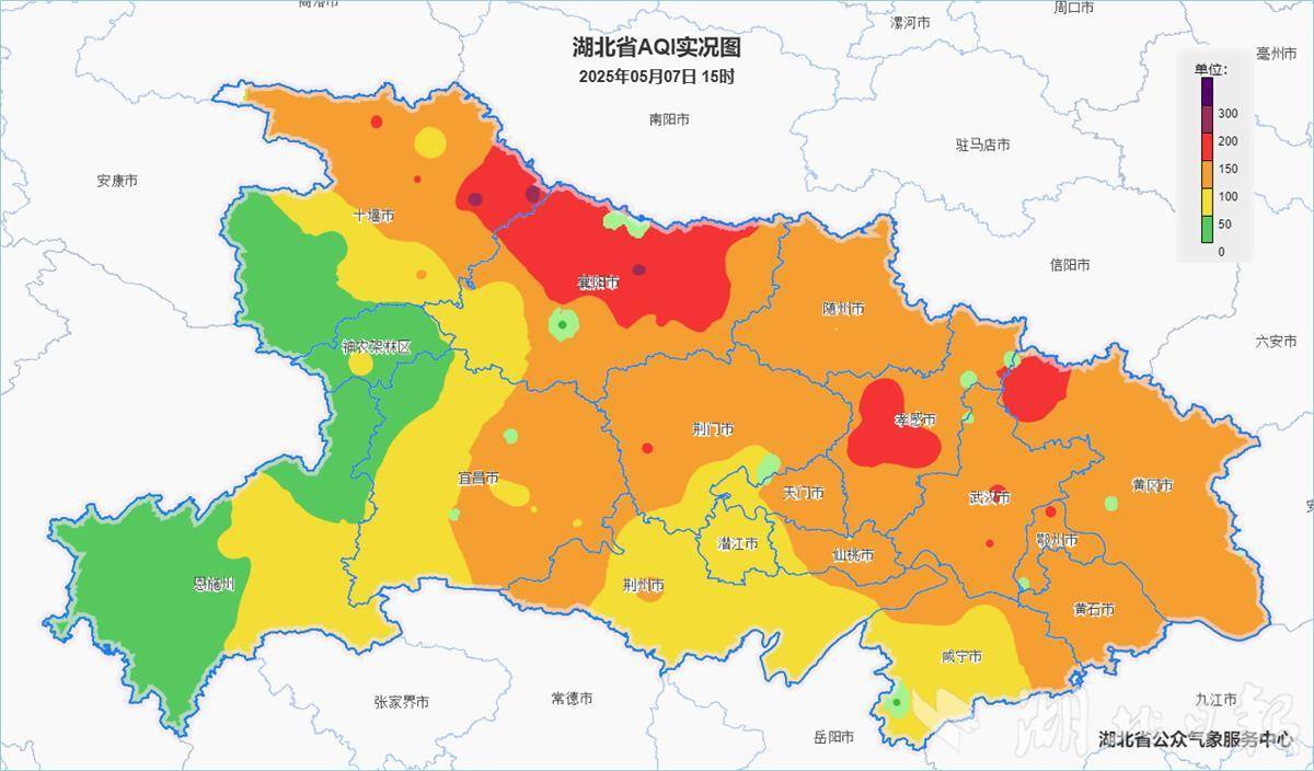 湖北日报讯(记者曾莉)5月7日白天,除恩施、神农架、宜昌西部外,省内其他地区依然有扬沙或浮尘,但由于沙尘在重力作用下缓慢沉降,空气污染情况较6日已有明显改善。白天省内大部晴朗少云,气温小幅上升,15时大部地区气温升至28至34℃。不过,7日晚开始,湖北南部和东部将会迎来一次较强降水天气过程,下午15时55分湖北省气象台发布暴雨黄色省级预警。