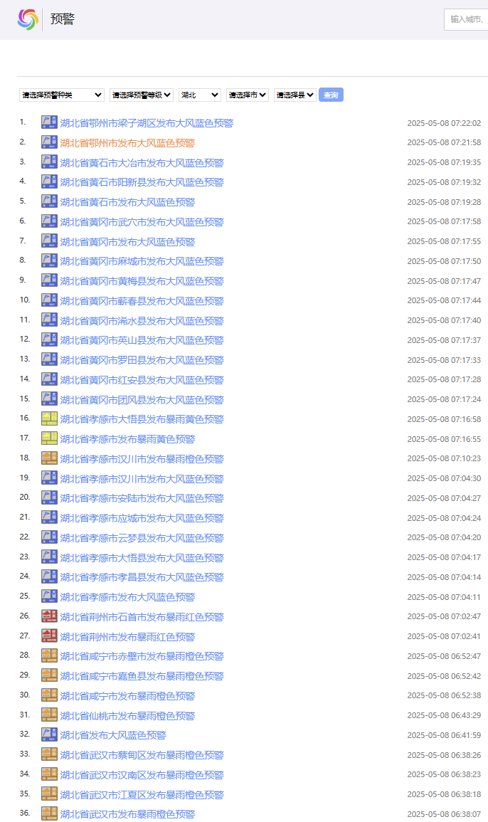 已连发82条预警信息