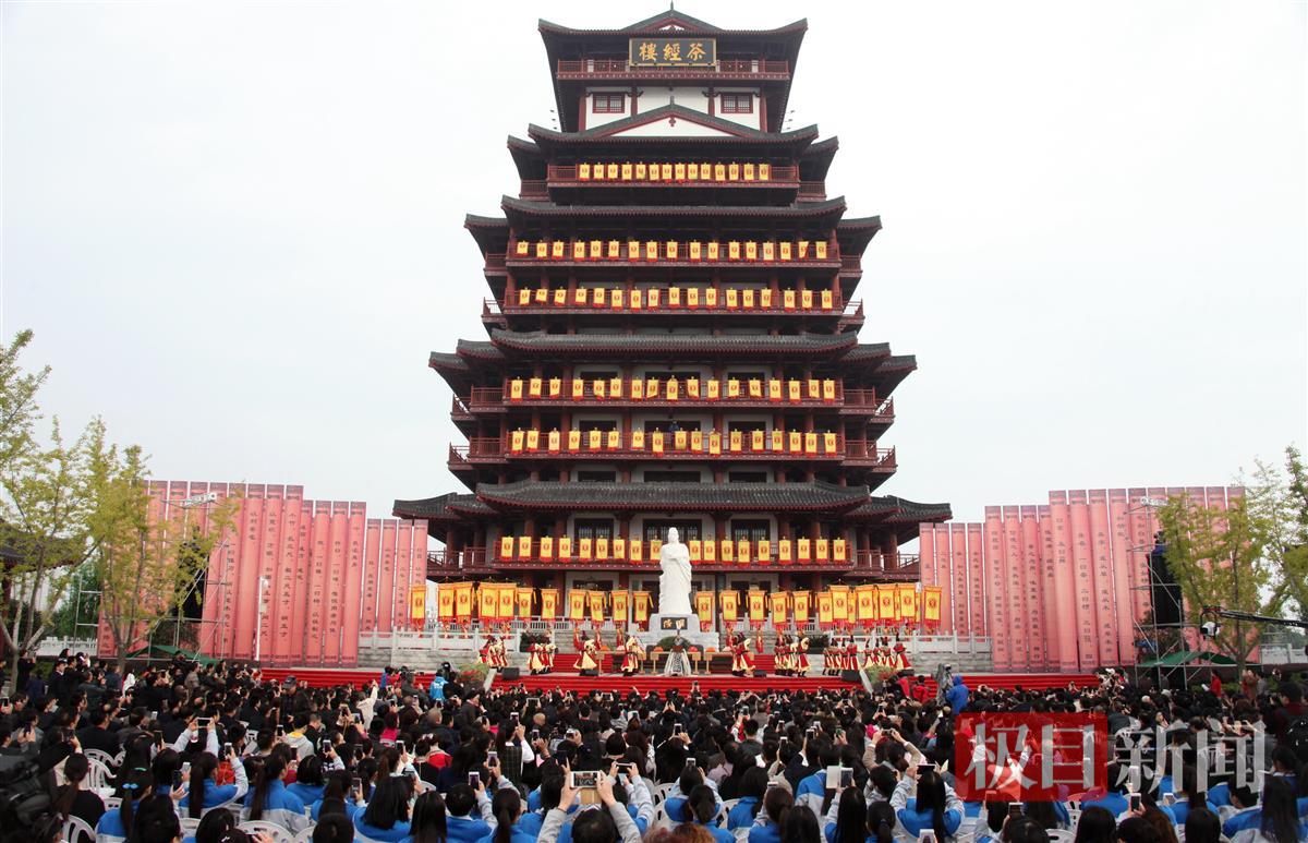 在天门市地标性建筑茶经楼,举行茶圣拜谒仪式