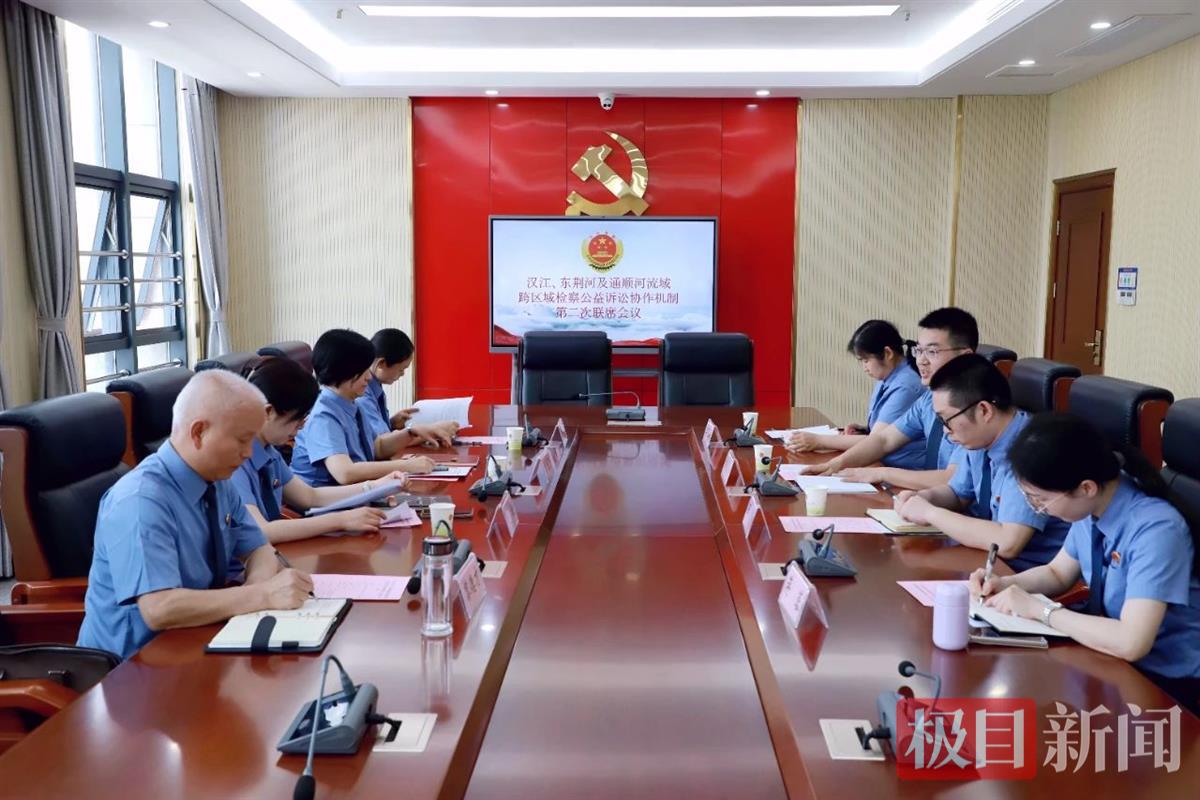 为进一步打破区域壁垒,凝聚流域生态环境保护合力,4月27日,武汉市蔡甸区、武汉市汉南区、仙桃市、汉川市四地检察机关再度聚首,召开汉江、东荆河及通顺河流域跨区域检察公益诉讼协作机制第二次联席会议。武汉市汉南区检察院副检察长刘佳、武汉市蔡甸区检察院副检察长郑君、汉川市检察院副检察长黎德才、仙桃市检察院党组成员刘秀华及各院公益诉讼部门负责人参加会议。