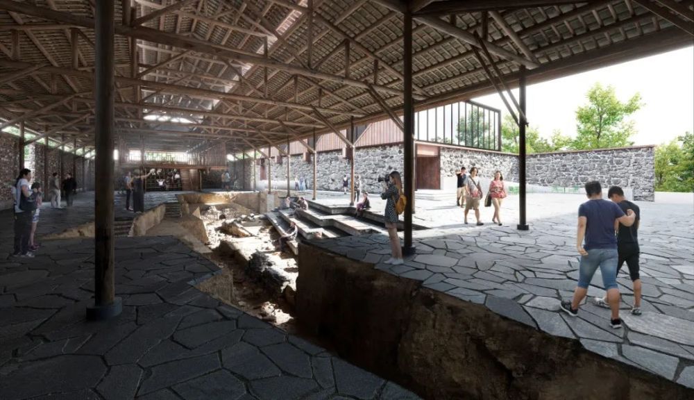 两座废弃厂房的下方是建于14世纪的国保遗产施州古城城址。更新设计将厂房和整个场地改造成为一个城墙考古遗址公园,不仅集中展示古城城墙的历史信息和考古发现,而且打开考古现场的封闭围界,将历史遗存作为激发城市公共生活的触媒,使其成为访客、研学师生和当地人会面交流的公共广场。
