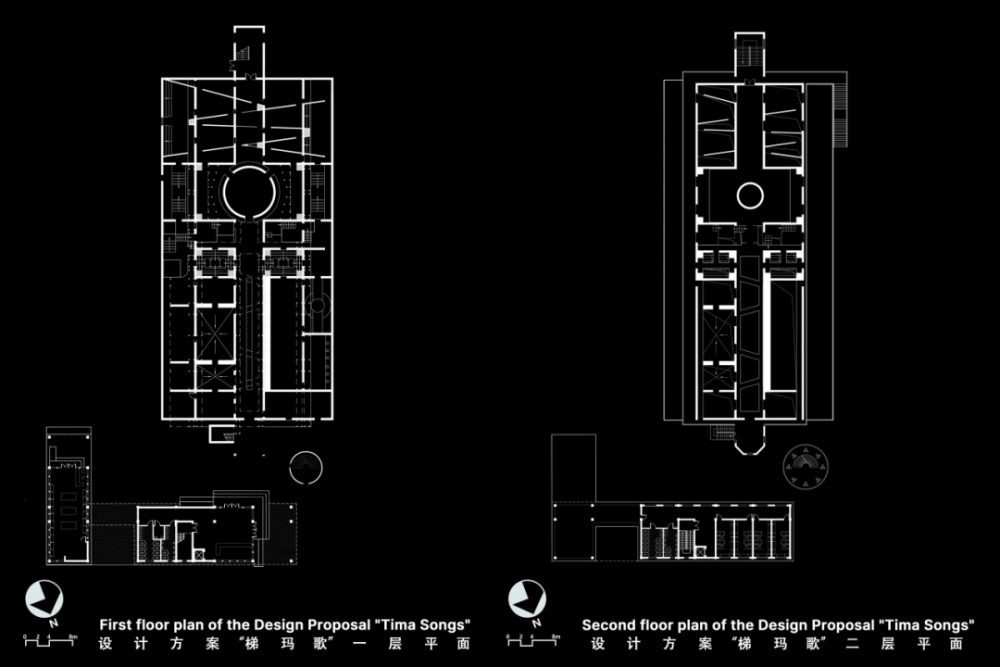 恩施第一监狱位于河流交汇处的岸边高地,废弃的建筑成为一处遗置的废墟。更新设计完整保存其外部形态和废墟气质,将其内部改造成为固定展演土家族民族史诗的沉浸式剧场。两个方案分别选取长篇民族史诗《梯玛歌》和创世传说《摆手歌》为蓝本,将剧情结构转译为空间场景,形成阴阳交织、生死轮回的情节空间,最终实现从监狱到剧场、从戏剧到建筑的转译。两个方案将交由当地土家族社区选择实施。