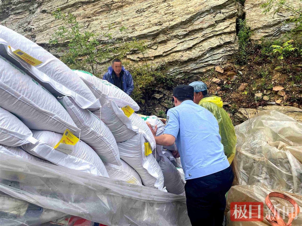 民警找来塑料薄膜遮盖饲料
