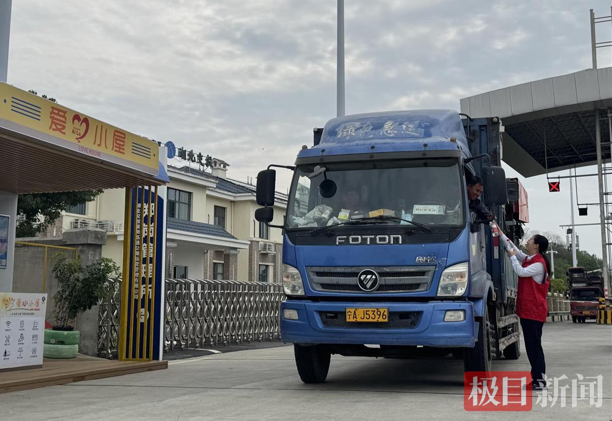 “先生,夏收辛苦了!天气热,多补水,我们的爱心小屋24小时提供志愿服务,有需要帮助的可以联系我们!”四辆宁夏籍牌照的运输联合收割机车辆从郑岗收费站缓缓驶出,“爱路—AiLu志愿者”李文君立即上前,将一瓶瓶清凉的矿泉水递到农机手们手中。