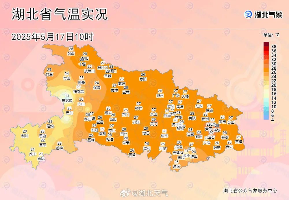 湖北多地将出现35℃及以上高温天气鄂西北局地将达37~39℃